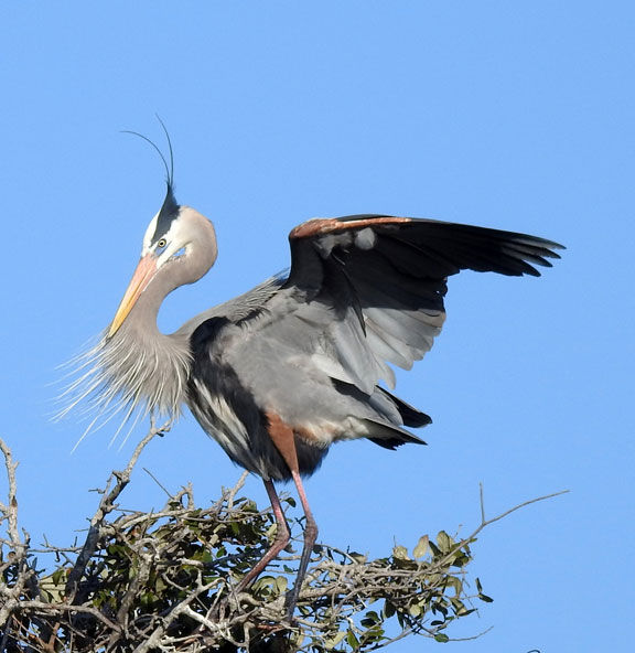 From the great blue heron rookery in Rockport, TX, last winter. The herons were busy choosing mates and building nests. Sue Taylor, of Hitterdal, was hoping to still be there when the young started to arrive. It was a breath taking sight for her to see the hundreds of great blue herons at the tops of live oaks trees.