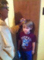 With all of that said, the most important part of the entire broom closet was what was measured on the door. For approximately 60-some years the door has served as a tablet to record the height of kids, descendants of my mom and dad. Name or initials and the date of measurement were recorded as each child reached a new height.